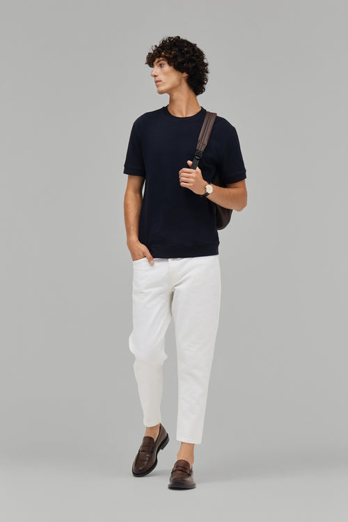 Erlebe Heavy Jersey, ein T-Shirt mit Struktur, Gewicht und stabiler Form. Die dickere Baumwolle verleiht dem Stoff eine kompakte Haptik, während ein spezielles Waschverfahren für Formbeständigkeit sorgt. Atmungsaktiv, dehnbar und vielseitig kombinierbar – ein Essential für jeden Tag.